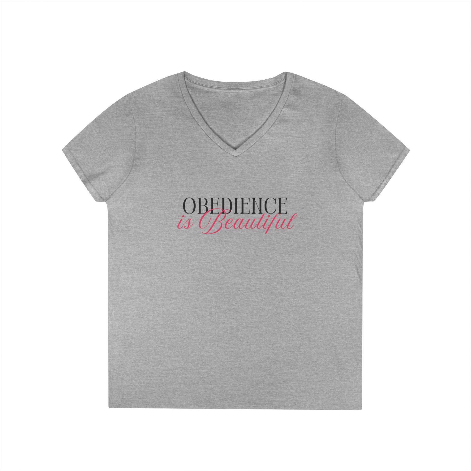 "Obedience is Beautiful" Ladies' V-Neck T-Shirt - Faith-Based Fashion