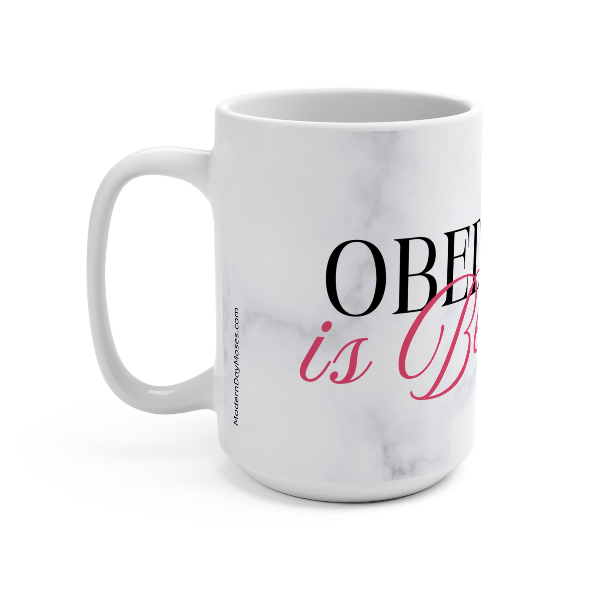 Remind her (or yourself!) daily that Obedience is Beautiful with this stylish 15oz mug from Modern Day Moses. Faith-centered living is rooted in the details of everyday life. Perfect for morning coffee or tea, this Bible-centered message affirms the importance of the Ten Commandments for everyone all the time. Ideal gift for strong, independent women who cherish a grace-filled life. Relevant for birthdays, Mother's Day, or for teachers.