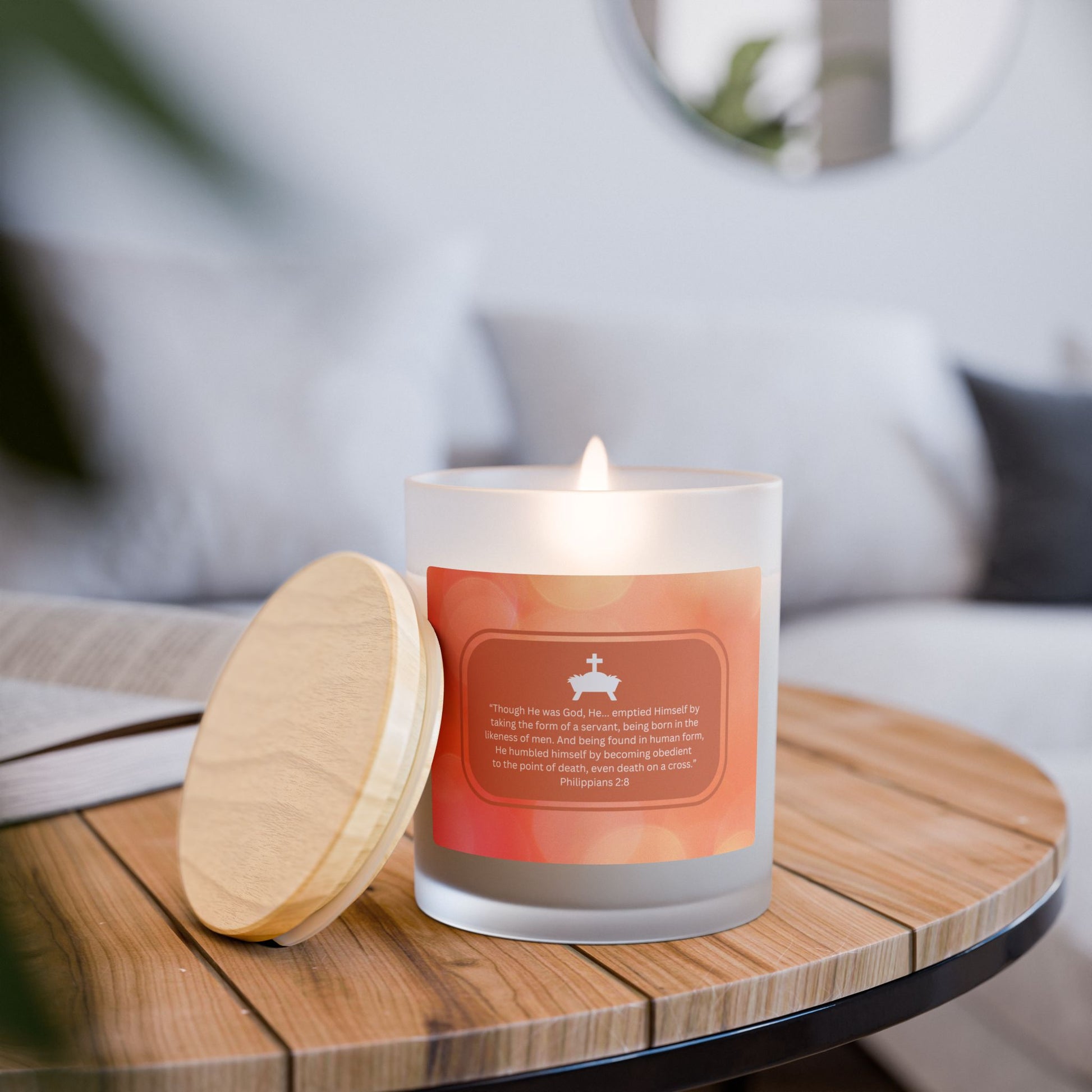 "Reflections on Obedience - Jesus" Frosted Glass Candle for Christmas and the Holidays