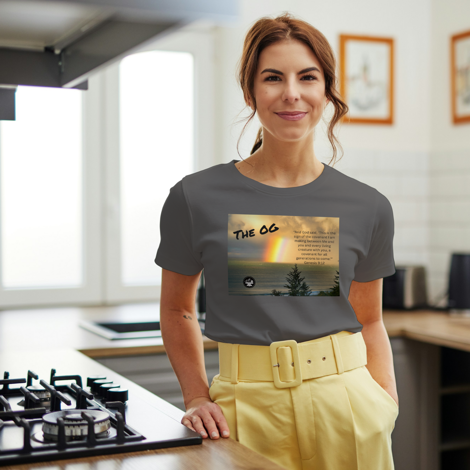 "The OG" Rainbow: The Symbol of God's Covenant with Us - Women's Inspirational Tee featuring verse from Genesis 9:12